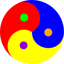 - El azul es complementario del morado y del verde (porque participa en ellos).
